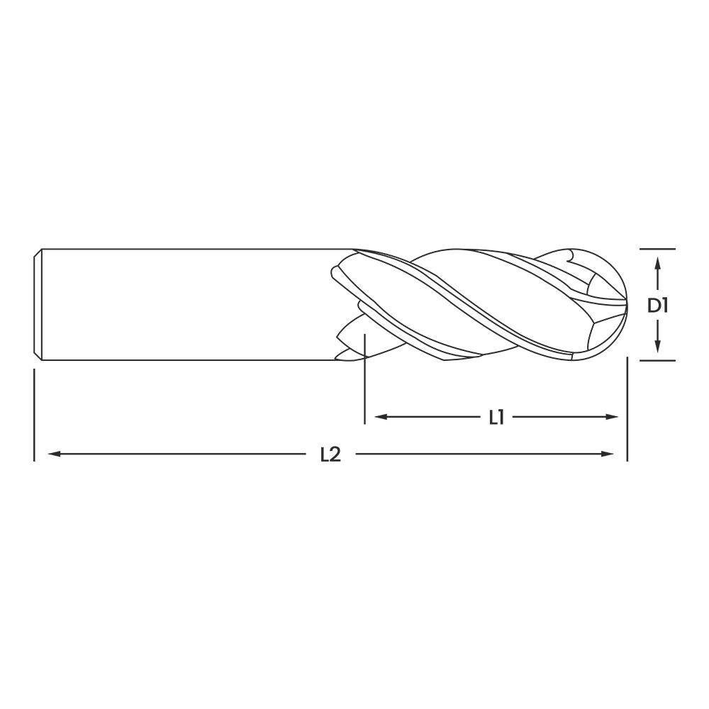 | CODE | SIZE(D1) | FLUTE LENGTH(L1) | OVERALL LENGTH(L2) |